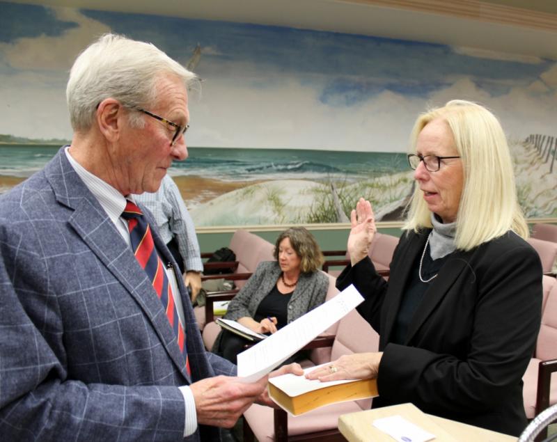 Mayor Martin Pagliughi administers the oath of office to Councilwoman Barbara Juzaiti....Read More
