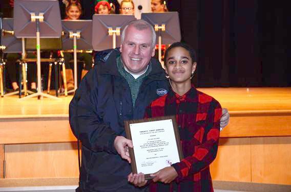 Avalon Business Administrator Scott Wahl presents Dylan Villano with a proclamation a....Read More