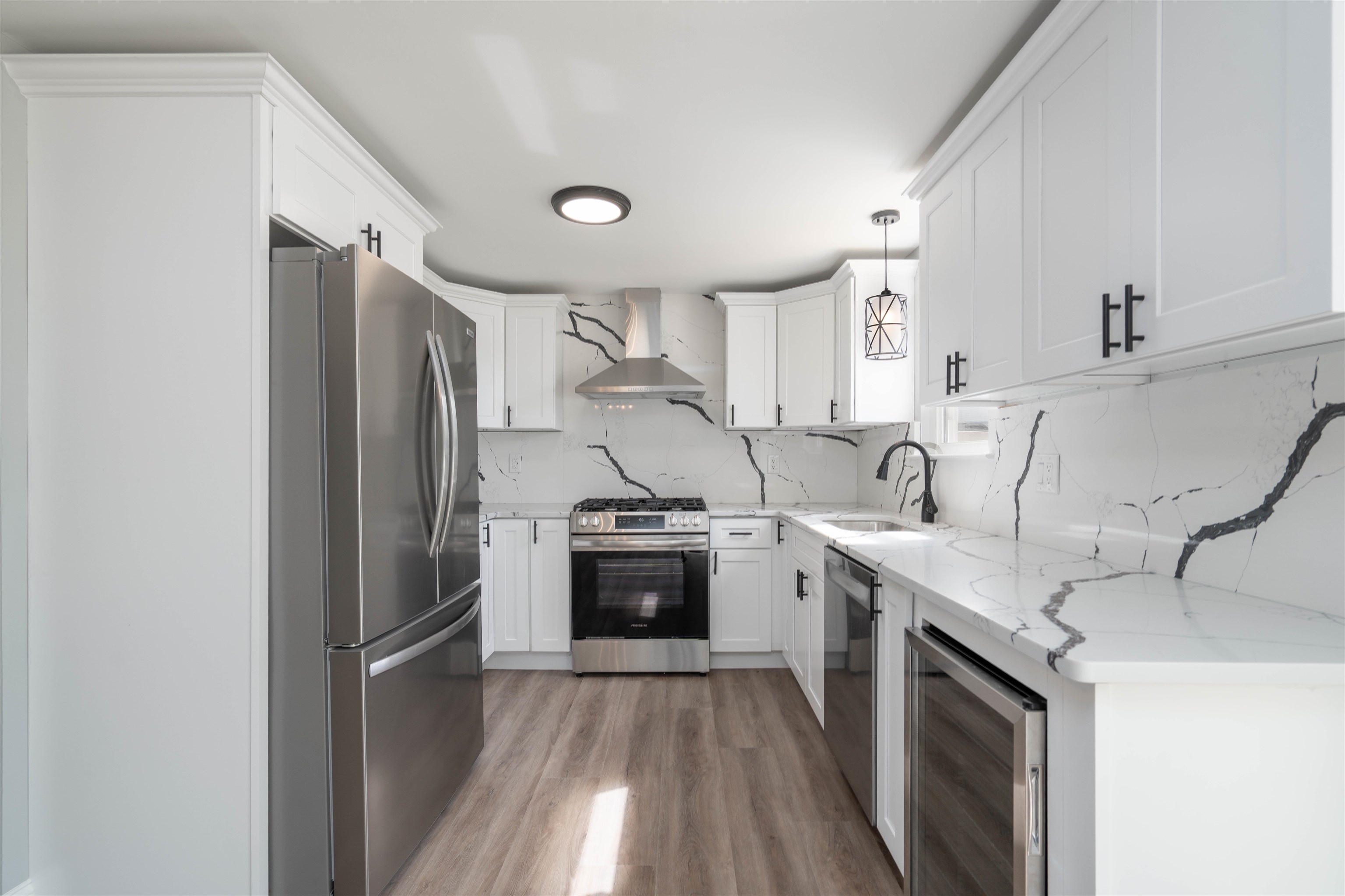 Discover the epitome of coastal living in this completely remodeled 3-bedroom, 2.5-bath Brigantine home. No detail was overlooked in this top-to-bottom renovation, where modern luxury meets seaside charm. Step inside to an open and airy layout featuring new luxury vinyl plank (LVP) flooring and brand-new windows and doors throughout, flooding the space with natural light. The gourmet kitchen boasts sleek quartz countertops and a striking quartz waterfall backsplash that adds a touch of high-end elegance. Enjoy maximum comfort year-round with a high-efficiency two zone ductless mini-split system for central air and an on demand tankless water heater for endless hot water. Entertain guests or relax on your private first- and second-floor front decks, with bonus bay views offering a serene backdrop to your island life. This property offers drive-on beach access a block down the road (with a permit), allowing you to easily take your gear for a day of fishing or relaxing, and then after a day on the shore, rinse off in the enclosed outdoor shower. Enjoy the convenience of private off-street parking for 3+ vehicles and a fenced in, newly landscaped and stoned backyard.
